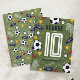 This cute and modern soccer-themed kids’ birthday invitation features a vibrant green background with playful illustrations of a football (soccer ball), trophies, stars, goals, and soccer boots. The back includes a matching sporty pattern for a fun, coordinated look. Easily personalize the invite with your child’s name, age, and all the important party details. Perfect for any young football fan’s celebration! This sample is shown as a 10th birthday invitation, but you can quickly change this under “Personalize this template” if needed.