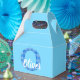 Blue plaid pattern print. Decorative favour boxes. Edit name to customise. Party decor idea.