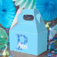 Blue plaid pattern print. Decorative favour boxes. Edit name to customise. Party decor idea.