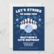 Boy's Navy Blue Bowling Birthday Party Invitation