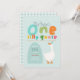 This cute and whimsical boys 1st birthday invitation design features one silly goose with a blue party hat, and can be personalised with all the information you need for your child's first party in cute and colourful typography. The invite also features a matching blue gingham pattern on the back. The perfect farm invitations for your little one's first birthday!