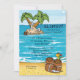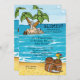 Fun and cute little boy's pirate treasure hunt, birthday party theme with pirate's ship, whimsical polly parrot, treasure chest, scroll and ocean beach with sand. On the reverse side is an island with palm trees, a treasure map and a pirate parrot with gold booty. A complete design set to coordinate makes creating your party's decor simple, easy and inexpensive!