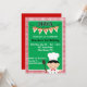 This customisable Pizza Party invitation features a banner of slices of pizza and a boy dressed as a chef.