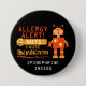Allergy Alert: Nuts causes Malfunction. Personalise with name or other information. Orange robot design with 'no nuts' symbol. Remind others at meal times of food allergies. Great for kids with food allergies. Attach to medical bags and note 'epinephrine inside' in text. Pin to child's clothing, coat or backpack to alert others of food allergy. Designs by Designs by Lil Allergy Advocates www.lilallergyadvocates.com