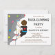 Rock climbing birthday party invitation with rock wall and brunette boy climber on a choose your own background and text colour. You can easily customise this children's any number rock climbing birthday party invitation for your event by simply adding your details in the font style of your choice.