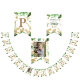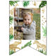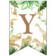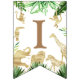 Brighten up your safari animal birthday with this cute happy birthday bunting! Patterned with watercolor green leaves, and golden animal silhouettes, each flag has a letter spelling HAPPY BIRTHDAY, the middle flag has a photo that can be personalised. Ideal for a two wild-themed second birthday party for a boy. Find matching fully customisable items in my shop.