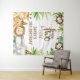 Cute safari themed two wild second birthday tapestry featuring seven watercolor jungle animals, leopard or cheetah print pattern text and some foliage. Ideal for a two wild themed second birthday party for a boy.