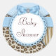 Elegant brown and blue safari baby shower stickers. This adorable brown and blue safari jungle baby boy shower sticker is easily customised for your event.