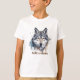 This boy's shirt is shown in white, short sleeves, with the phrase of "Yellowstone" completed by a wolf head graphic print.