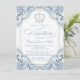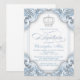 Prince baptism invitation with beautiful diamond crown and elegant script on a pretty baby blue and white swirl background. This elegant blue prince baptism invitation is easily customized for your event by simply adding your details in the font style and color, and wording of your choice.