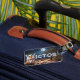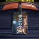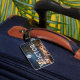 personalised name with a Vulture on the first letter on the luggage tag for boys