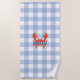 This boy's towel is perfect for the beach or pool. Features a red watercolor split crab design and personalised with a name.
