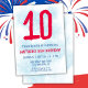 10th birthday kids boy blue party 10th birthday party invitation for a 10 year old boy with fun fonts writing and fun watercolor number.