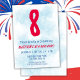 8th birthday kids boy blue party 8th birthday party invitation for a 8 year old boy with fun fonts writing and fun watercolor number.