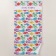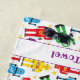 Cool boy's beach towel with a colourful robot and alien print, with a stripe across the bottom for you to add your own name or message