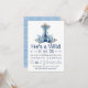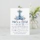 Boys wild one first birthday party invitation with blue tribal teepee and blue arrows on a blue Aztec tribal design background. These tribal wild one first birthday party invitations are easily customised for your event by simply adding your details.
