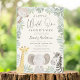 Get ready to welcome your little adventurer with this Boys Wild One Safari Animals Baby Shower Invitation! Featuring adorable jungle animals like elephants, giraffes, zebras, and playful monkeys in soft boy-friendly tones, this invitation is perfect for a safari-themed shower. With watercolor greenery and fun typography, it's fully customisable with your event details—just right for celebrating your wild one on the way!