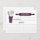 Fun retro bridal shower kitchen recipe cards featuring a boysenberry rolling pin & kitchen tools. The front of our recipe card offers room for a recipe title, from the kitchen of and ingredients space. Flip our recipe card over to view our lined back for recipe directions. Visit our shop for matching bridal shower invitations & recipe binders available in our shop in a large assortment of popular wedding shower colours. Perfect bridal shower invitation insert for a stock the kitchen bridal shower.