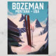 Bozeman Montana ski poster logo in a detailed and beautiful vintage style, featuring an illustrated backdrop of the beautiful landscape.
