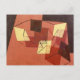 A fine art postcard with the painting by Paul Klee (1879-1940) titled, Braced Surfaces (1930). A three-dimensional abstract painting of squares in browns and yellows. Klee was Swiss-born German expressionist artist, who explored and studied colour theory.