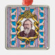 The original artwork by ZoeSPEAK on this Ornament features a portrait of the classical music composer Johannes Brahms, in an ornate golden frame, on a light blue wallpaper background with pink stripes and prancing white sheep. This is the perfect stocking stuffer gift for a classical music lover's Christmas tree.