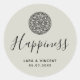 Boho happiness modern design with a black and white weaved rope circular pattern.