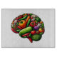This unique design features a vibrant array of vegetables arranged in the shape of a human brain. The left side bursts with red and green hues from tomatoes, bell peppers, and chilies, while the right side showcases a lush green palette with broccoli, cucumbers, and peas. This creative representation highlights the concept of ‘brain food,’ emphasizing the cognitive benefits of a vegetable-rich diet. Perfect for health enthusiasts and food lovers alike, this design is both visually appealing and thought-provoking.