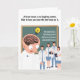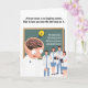 A graphic illustration featuring a cartoon professor with his brain visible in his head having a light bulb idea while brainstorming how to tackle a brain tumour operation on a patient. The neurosurgeons and physicians are standing in a lecture room with a blackboard behind them on which the names of the four most common tumours appear. The words, a brain tumour is no laughing matter. Glad to hear you have the best team on it, appears on the outside and the inside has your own personalised message to convey your heartfelt sympathy and recovery wishes to a friend, loved one or work colleague.
