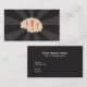 Business card featuring a brain with orange exclamation marks on a dark sunburst background.