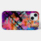 A brightly-coloured (orange, blue, pink,yellow, black), highly abstract fractal image. Customise by adding your own text.