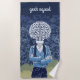 This blue-dominant beach towel holds an illustration of a person with a head made entirely of a brain. This is a lovely design to gift to the genius at the house or school! You can customise the default text "genius yoga".