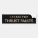 I Brake For Thrust Faults - beige lettering on black bumper sticker.
