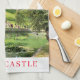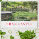 A beautiful view of Bran Castle in Transylvania in Romania printed on a souvenir tea towel.