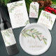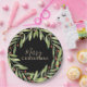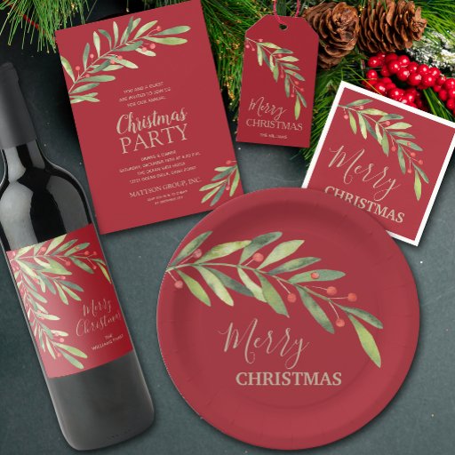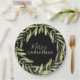 Paper plates in 2 sizes feature elegant greenery and berries with Merry Christmas in chic lettering on any colour background (we show black.) MATCHING items in our store.