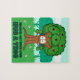 Branch Out With Love and Hug A Tree puzzle, featuring a nature inspired scene of a funny happy tree with big goofy eyes and a wide friendly grin. The tree trunk is brown and the leaves are green dotted with red heart shaped apples. Below are two text templates in a chunky fun green font with a black stroke. One reading "Branch Out With Love" and the other reading " Hug A Tree" These can be used as they are or you can use the text templates to add your own text. The background is a simple nature scene with trees, grass and clouds. Ideal for tree lovers, nature lovers and a love for the environment.