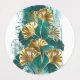 Branch with jewelry, gold and green leaves of Ginko biloba on light, painted green background. Ginko biloba