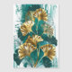 Branch with jewellery, gold and green leaves of Ginko biloba on light, painted green background. Ginko biloba