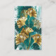 Branch with jewellery, gold and green leaves of Ginko biloba on light, painted green background. Ginko biloba