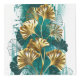 Branch with jewellery, gold and green leaves of Ginko biloba on light, painted green background. Ginko biloba