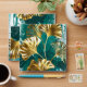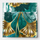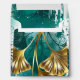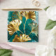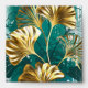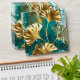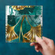 Branch with jewellery, gold and green leaves of Ginko biloba on light, painted green background. Ginko biloba