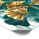 Branch with jewellery, gold and green leaves of Ginko biloba on light, painted green background. Ginko biloba
