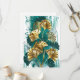 Branch with jewellery, gold and green leaves of Ginko biloba on light, painted green background. Ginko biloba