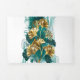 Branch with jewellery, gold and green leaves of Ginko biloba on light, painted green background. Ginko biloba