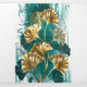 Branch with jewellery, gold and green leaves of Ginko biloba on light, painted green background. Ginko biloba