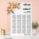 Branch with peach roses wedding acrylic seating chart. Featuring a sleek white frame, the sign is adorned with a delicate branch embellished with soft peach rose flowers and lush sage green leaves in the top left corner. The transparent left edge adds a modern touch, while the striking typography beckons attendees to joyfully partake in celebrating your special union.