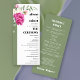 Branch with pink rose and white flowers sage wedding BUDGET wedding ceremony and party program. This elegant wedding program card features a delicate white frame, adorned with a branch with hot pink roses and white flowers. The frame is bordered on the left by a calming sage green, providing a subtle contrast. The couple's names are prominently displayed in a bold typeface, along with the words 'THE CEREMONY' and 'PARTY'. The back of the card is a solid sage green, offering a clean and sophisticated finish. The overall design reflects a budget-conscious yet beautiful aesthetic, perfect for a cherished wedding celebration.