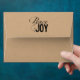 Kraft paper look envelope with berries and branches sprig on front, black typography text that reads Peace & Joy on back.