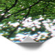 This beautiful print features a photograph taken from within a dense forest. The photograph shows the view of the sky through a tangled and beautiful web of tree branches and luscious green leaves.