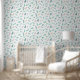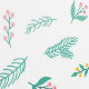 A delicate pattern featuring a variety of green leafy branches, pine needles, and berries. The design showcases a combination of vibrant greens, soft pinks, oranges, and yellows scattered across a clean white background. This nature-inspired composition brings a fresh, organic feel with its mix of botanical elements, creating a peaceful and airy vibe.