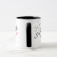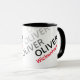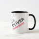 Stylish white mug with his/her name (grey-to-black gradient) and surname (red colour) personalised in sans serif font... a simple and modern typography design.